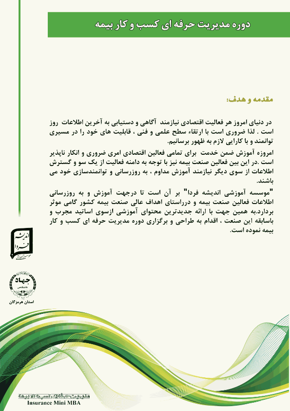 عنوان: | مدیریت حرفه ای کسب و کار بیمه |